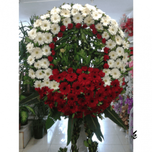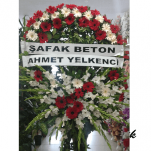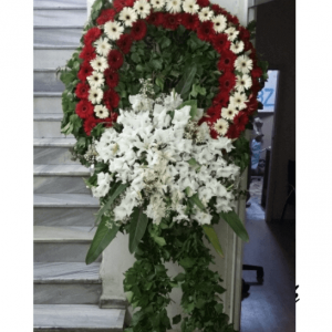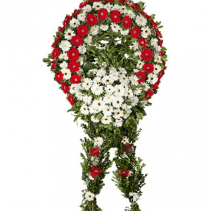 Kırmızı Beyaz Çiçekli Cenaze Çelengi