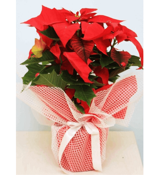 Puansetya hediye olarak gönderilebilecek kırmızı renkli salon bitkisi.