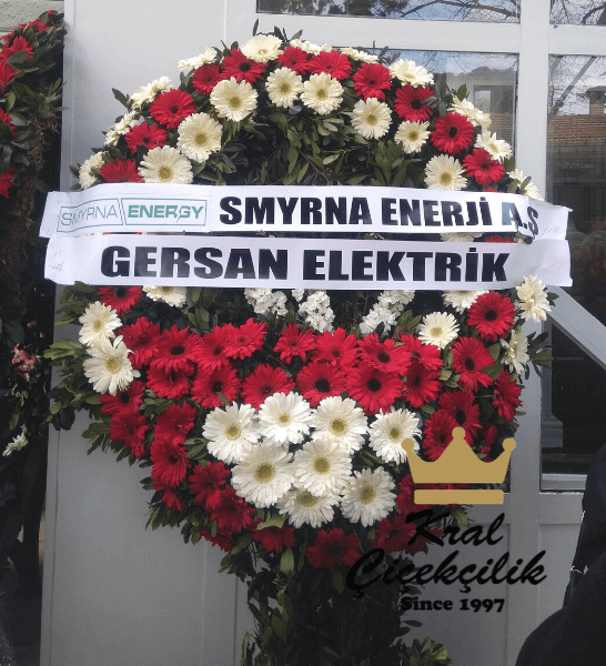 Kırmızı Beyaz Çiçeklerden Oluşan Cenaze Çelengi