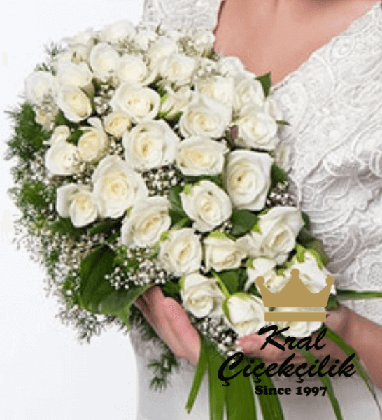 Beyaz Güller ve aralarında gelincik çiçekleri ile zenginleştirilmiştir